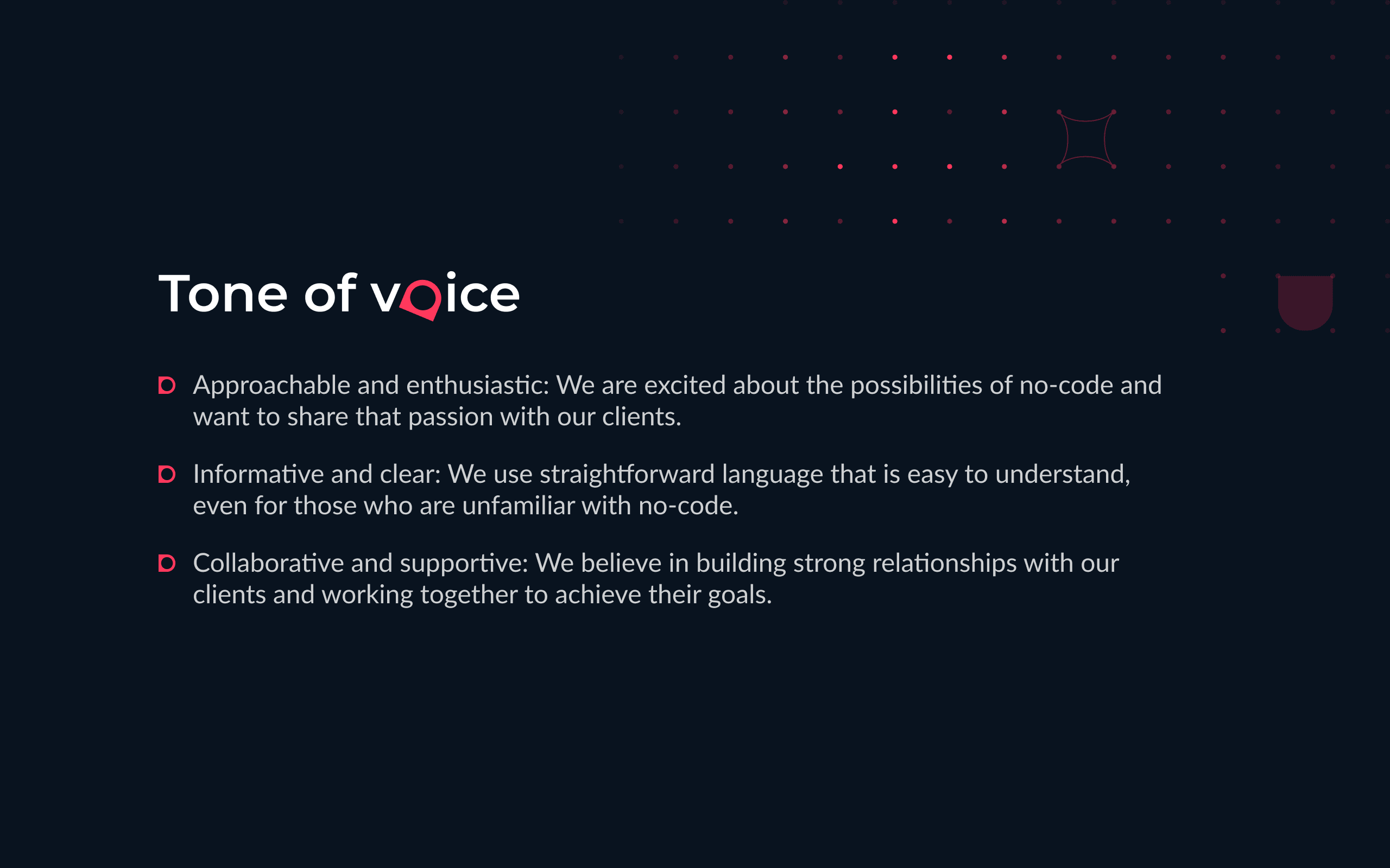 Defined the brand language, including tone of voice, messaging, and visual style.